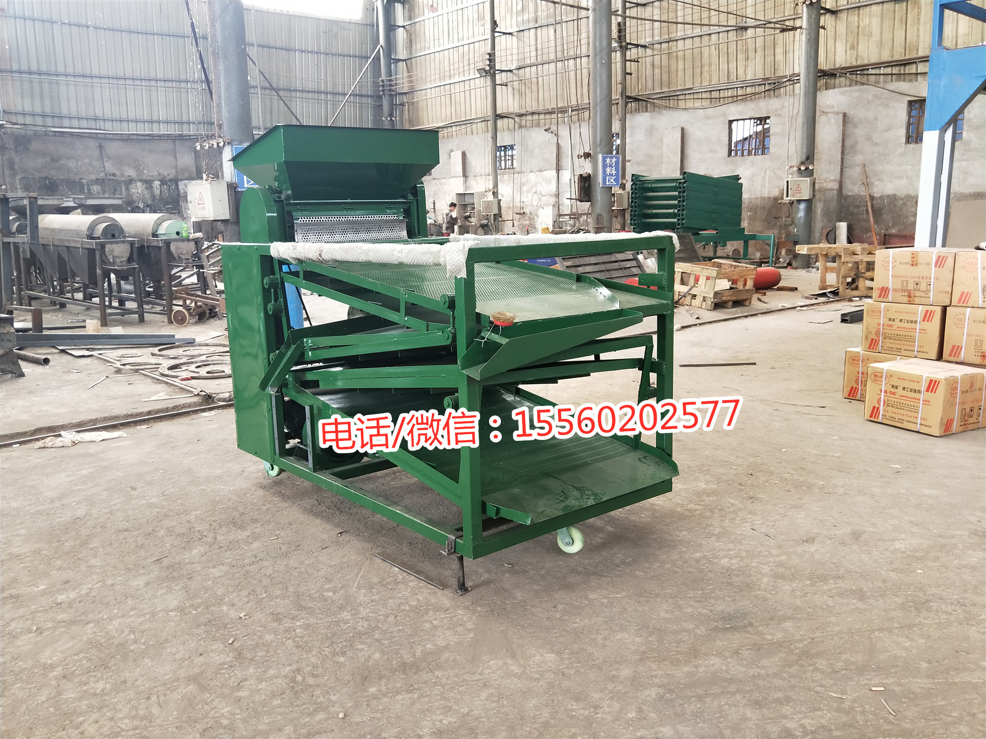 使用該機器可以把花椒中的籽、桿、葉、塵土等雜質分別清選出來,同時分出花椒顆粒等級,取代繁重的人工清選勞動。花椒清選機是專用于花椒脫粒、清選、分級、去雜的機械。 花椒篩選機及其他配套設備(提升機、皮帶機、絞龍、螺旋輸送機等)用途和特點:本機下方設有風機,可將從篩面流下的椒籽和花椒進一步風選分離,使篩凈率大大提高。