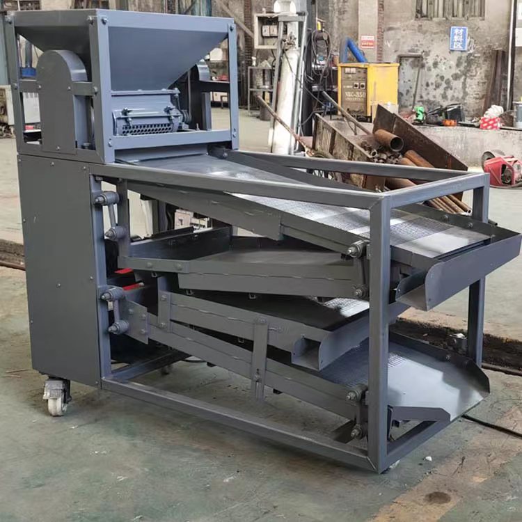 運行程序:啟動電機后直接把物料放進進料斗,烘干后的花椒在進料斗中打耙脫粒,然后落到篩面上進行篩選,一層篩選出來的梅花椒和大的花椒枝葉,二層是花椒籽落到出料口再次進行風選,三層進行復試篩選,四層是成品花椒殼,每層的底篩篩選出來的是小的花椒枝葉,就完成了整個運行程序。